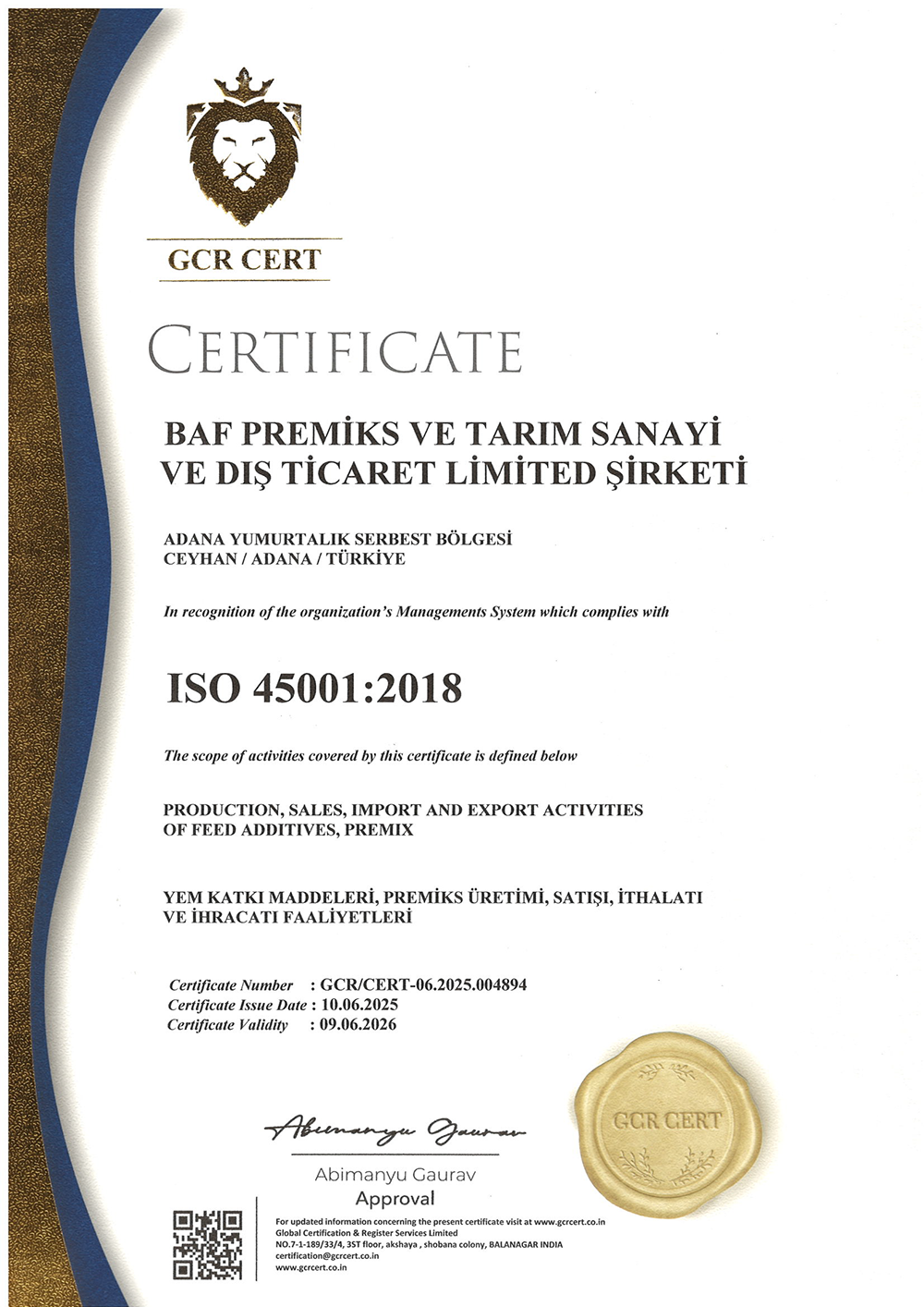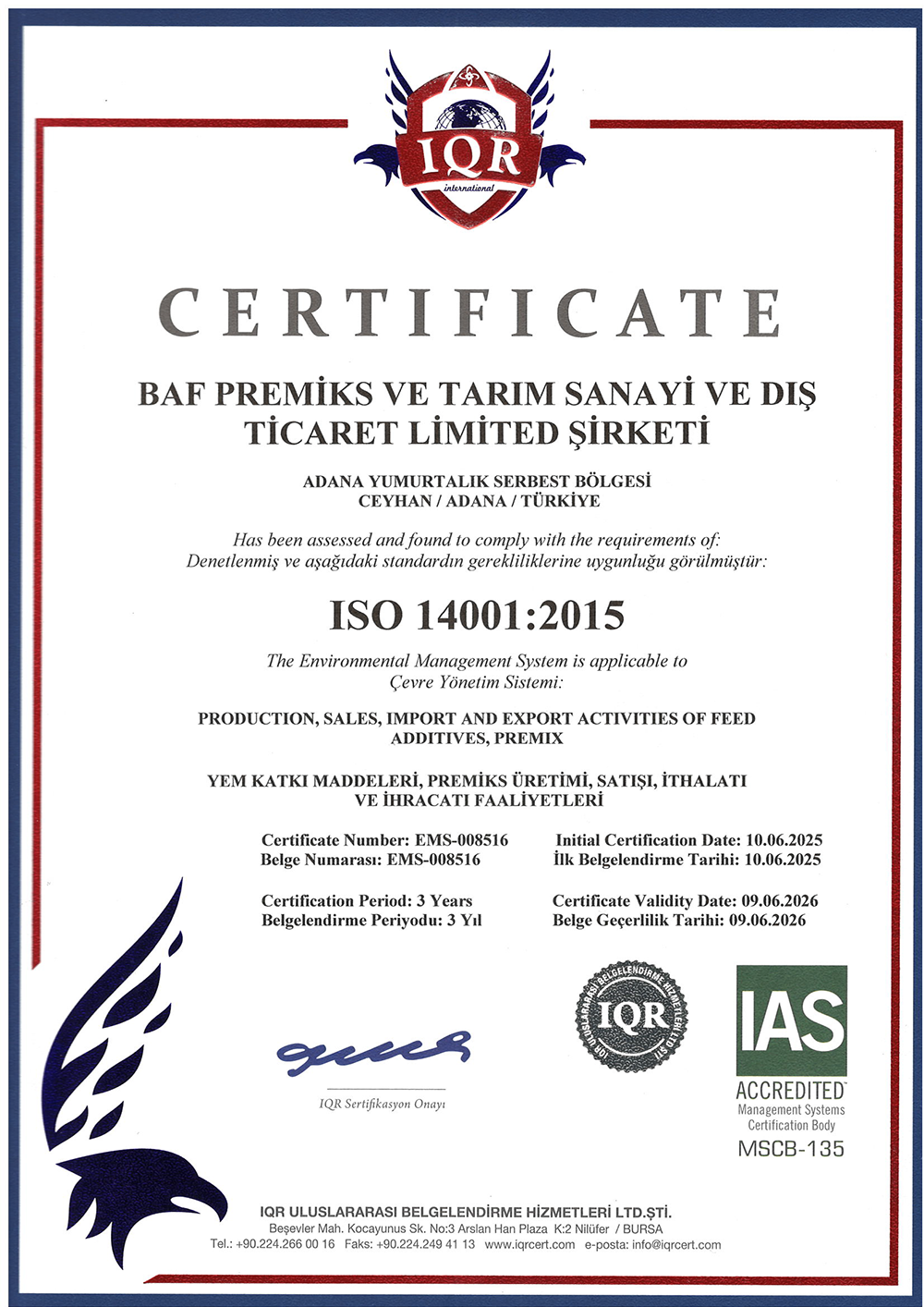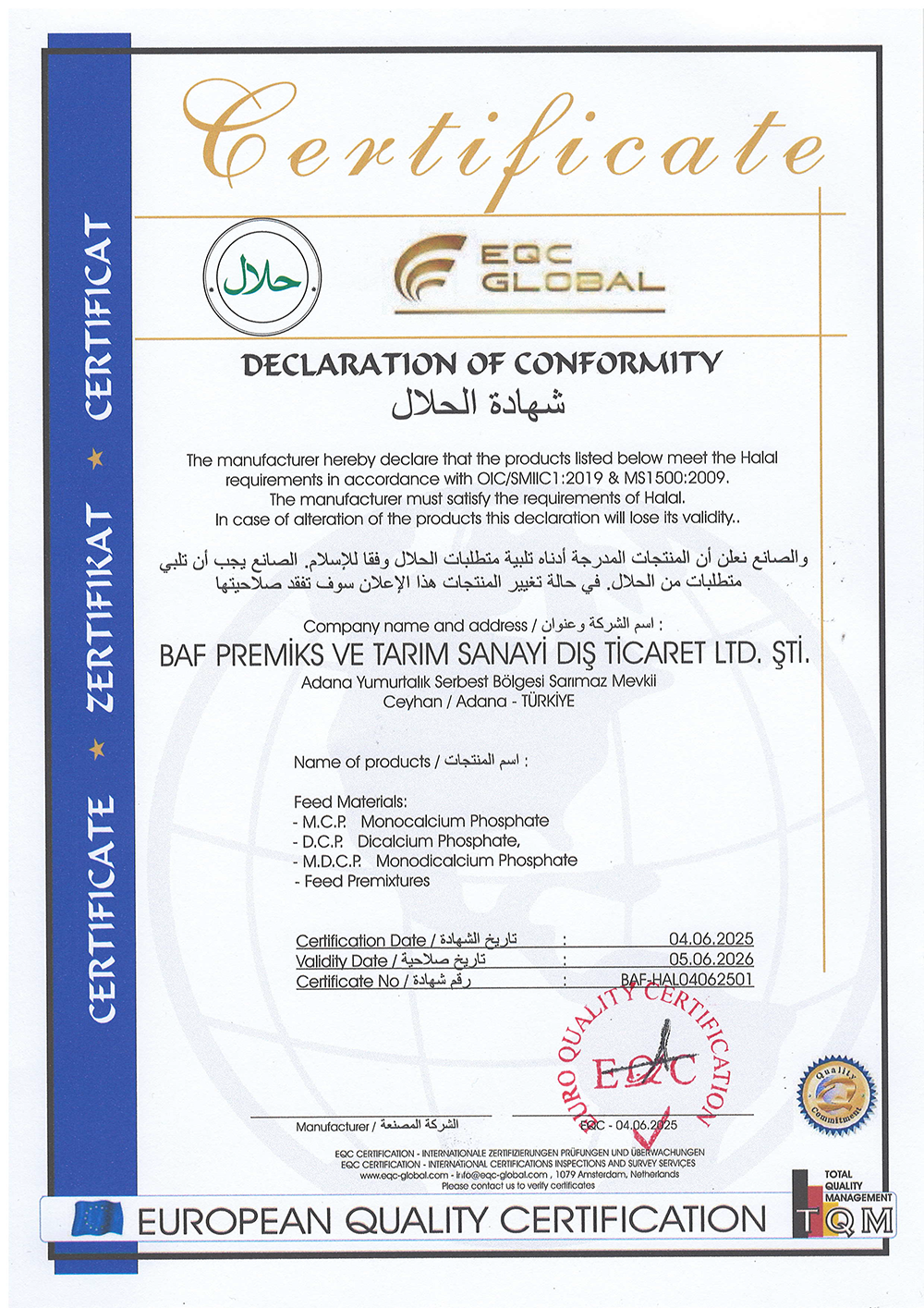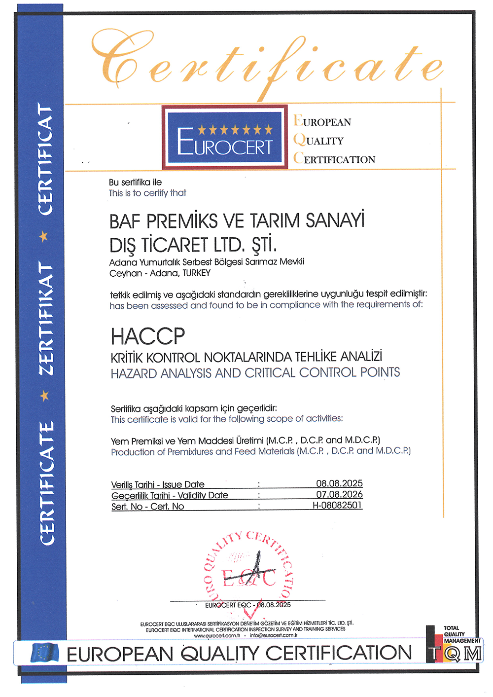At BAFFEED, quality is the fundamental principle at every stage of our production. In the manufacturing of animal and human feed additives, premixes, and phosphates, we operate with reliable, traceable processes that comply with international standards. All our products are meticulously controlled from raw material to final output and produced according to the highest quality requirements.